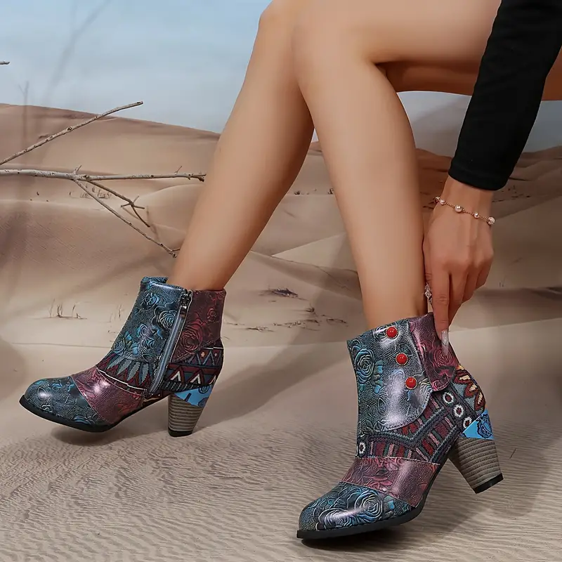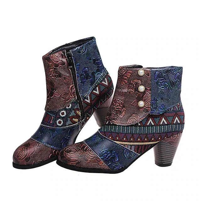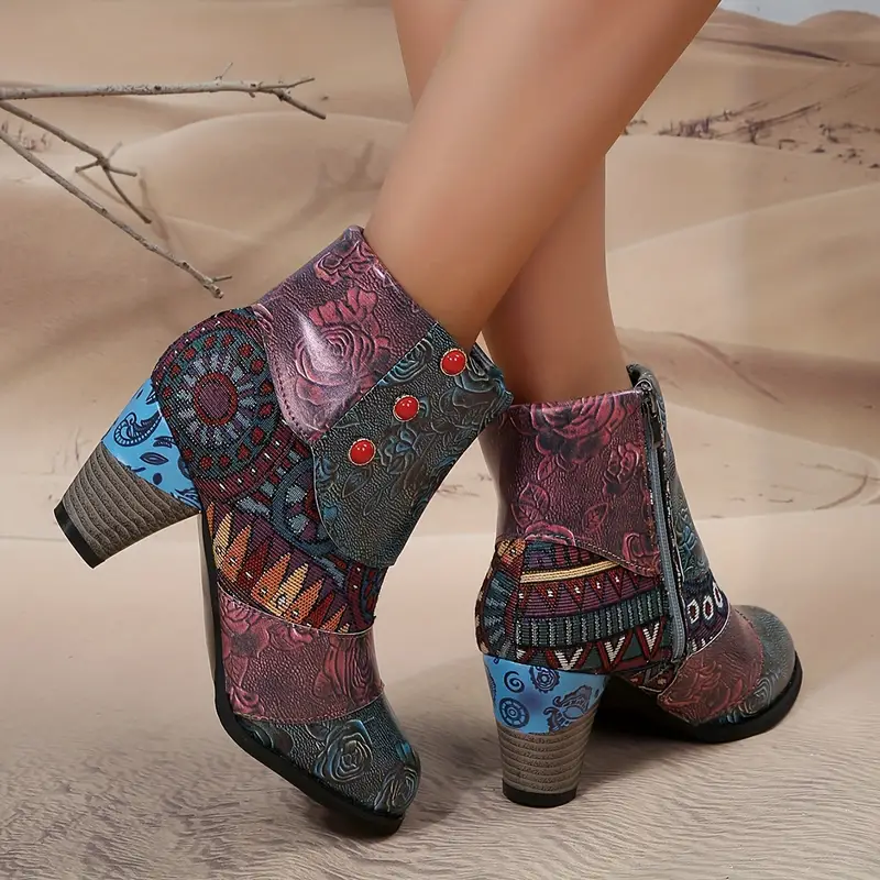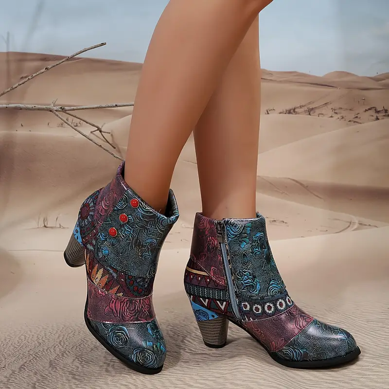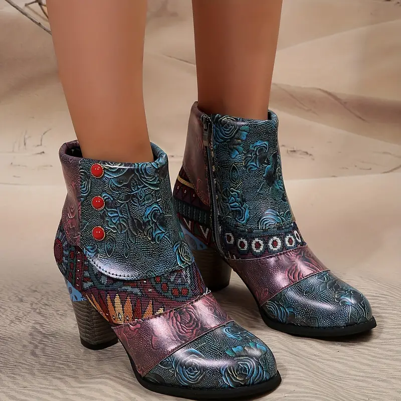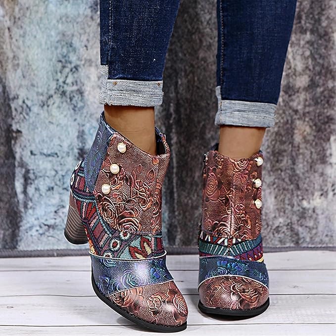 Bohemian Floral Embossed Ankle Boots for Women