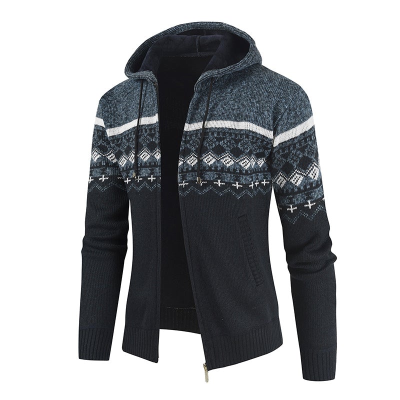 MEN'S PLUSH PLUS SIZE HOODED CARDIGAN SWEATER